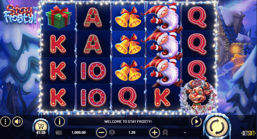 Landing 3, 4, or 5 reindeer scatter symbols on the reels of Stay Frosty will get you into the festive spirit with a generous gift of 10, 15, or 20 free spins, respectively. It’s like unwrapping a present under the Christmas tree—but better because these gifts can lead to big wins.
