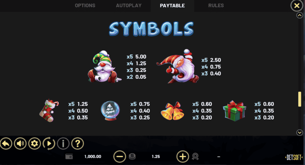 Every spin is a chance to see delightful Christmas-themed graphics light up your screen. Scatter symbols unleash the season’s magic, while sitting and dancing dwarves add a playful touch to your gaming experience.
